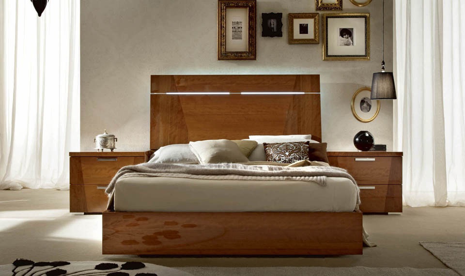 Set for bedroom in veneer with elements of metal, Sedona, Alf