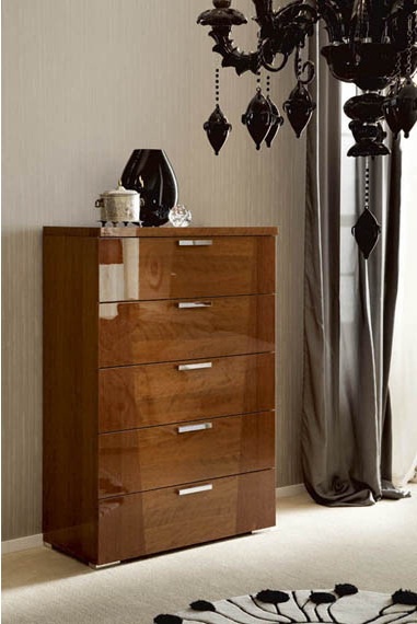 Bedroom set Sedona by Italian manufacturer Alf. The set includes double bed with drawer and high headboard, bedside Cabinet, chest of drawers, mirror. The furniture is made from solid wood veneer finish in a glossy lacquer according to the catalogue. Set augmented legs and accessories made of glossy metal. The modern design.
