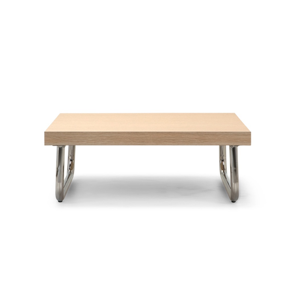 Coffee table from the collection of Erik Home from the Italian manufacturer Domingo Salotti. Square low table, made in a modern style, can be used both in public places and in the home interior or on the terrace or in the gazebo. A table is assembled on a frame of tubular chrome-plated metal. Table top made of wood laminate. Colours in stock.
