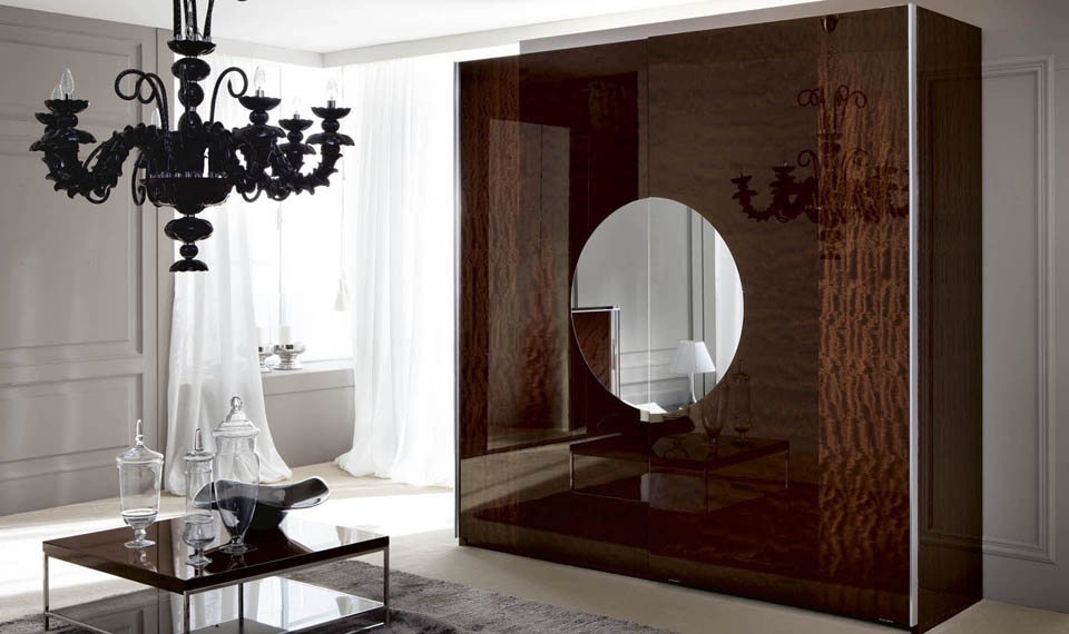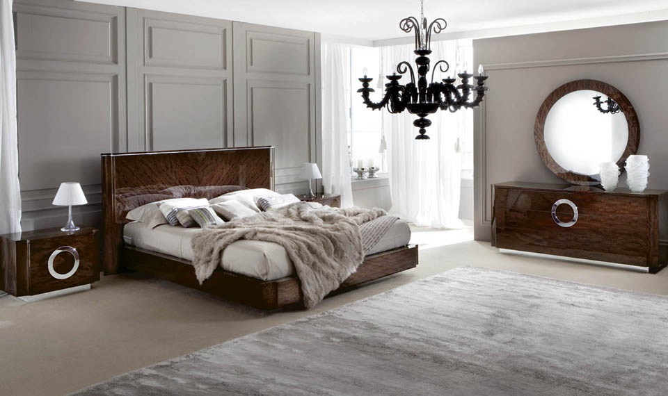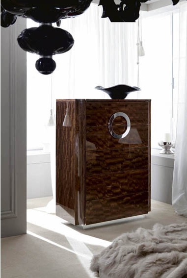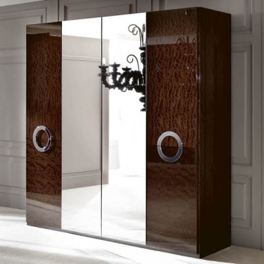 Headsets for bedrooms Torino from the Italian manufacturer Alf. This kit includes: double bed with high headboard, bedside table, a curbstone for the TV, chests of drawers, round mirror, wardrobe (4 models available). Products made from solid wood. Finishing - veneer out of range. The surface is lacquered in a glossy magazine. The main decoration of the Handsfree is used the round shape of the accessories that adds uniqueness and flavor. Modern design, great choice for a stylish interior.