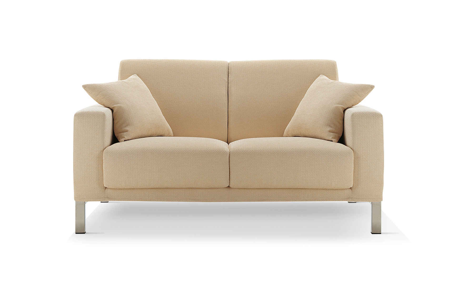 Sofa Cucciolo collection Contract from the Italian manufacturer Domingo Salotti. Functional sofa features an ergonomic design without acute angles, very convenient for hotels, hostels, etc. It also perfectly fits in the modern interior of office or living room. The frame and legs are made of polished metal, plain upholstery textile from the company's range, the filler is polyurethane foam. Available double and triple models. Wide armrests can serve as a stand for books or cups, cushions with extra volume. Complement the sofa cushions. Colors to choose from a collection company.
