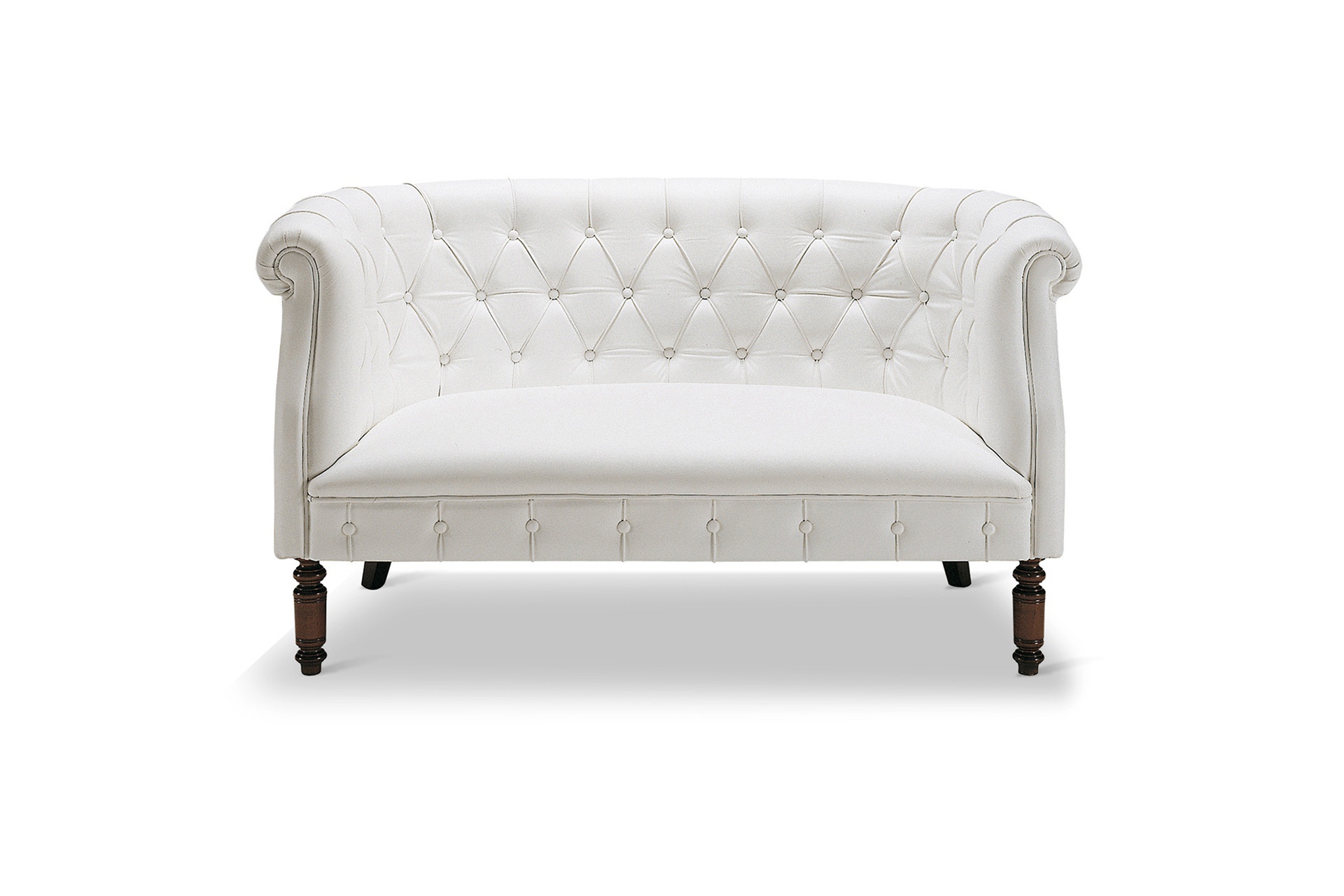 203 sofa collection Contract from the Italian manufacturer Domingo Salotti. Elegant two seater sofa is suitable for public spaces and living room, study or library. The frame and tapered legs made of wood, fabric, plain textile from a range of companies. Available model with legs turned balusters. The sofa is made in neo-Baroque style. The soft backrest and rolled armrests of the same height, the back is decorated inside with padding in the form of rhombs, the filler - polyurethane foam of different densities. The bottom of the sofa is also decorated with stitch. Colors to choose from a collection company.