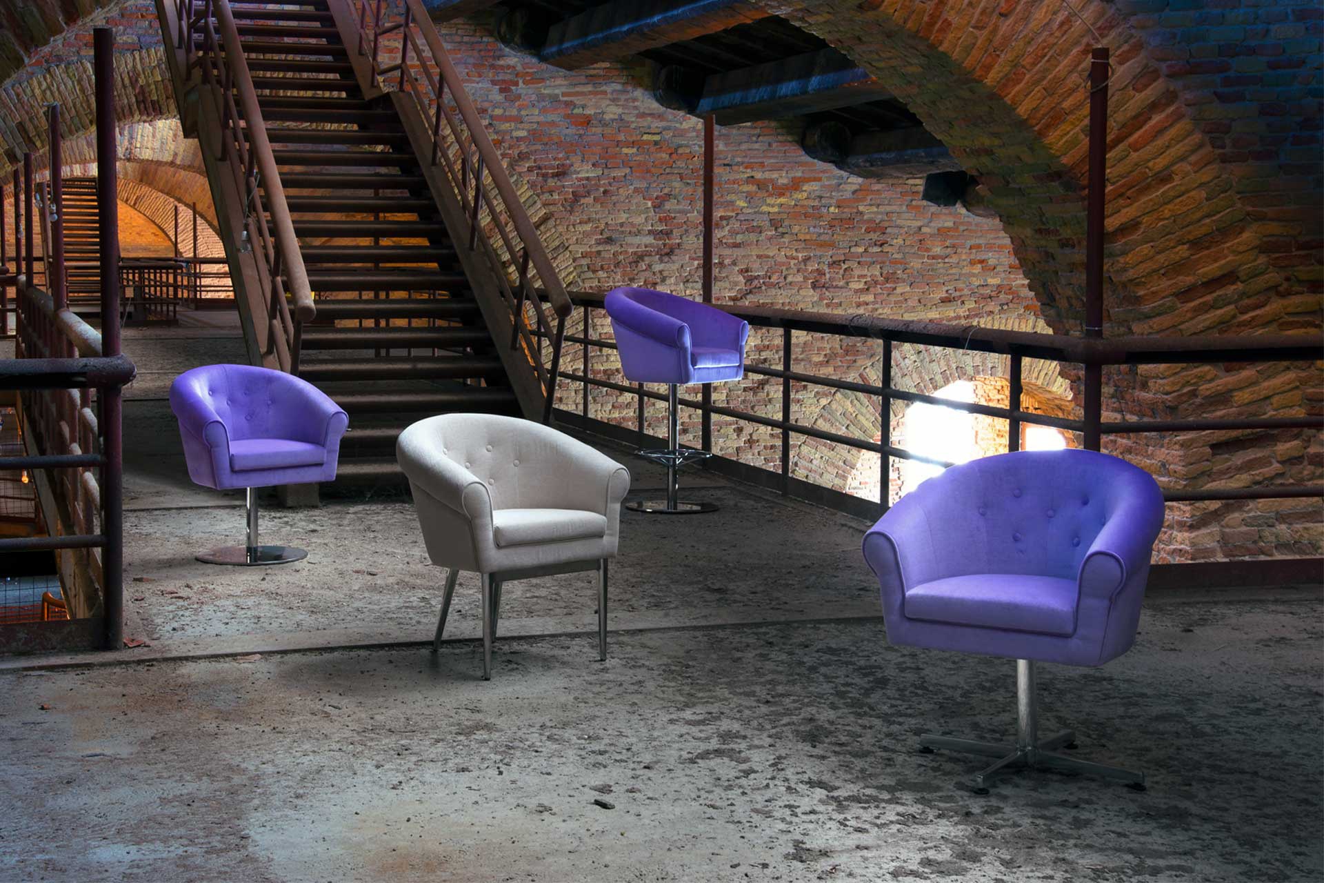 Melt chair from the collection Contract from the Italian manufacturer Domingo Salotti. The collection includes 4 models and popularnych bar chairs, including rotating, is performed on a frame of tubular chrome-plated metal. The anchors are metal criss-cross legs, simple metal legs or metal round base; available model with round footrest. The back is decorated with stitch Capito, upholstery - bright-colored textiles from the assortment of the company. Popularnie chairs are also suitable for Housewives in the kitchen. The models presented in the photo gallery different variations of size and shape of the base. Colors to choose from a collection company.