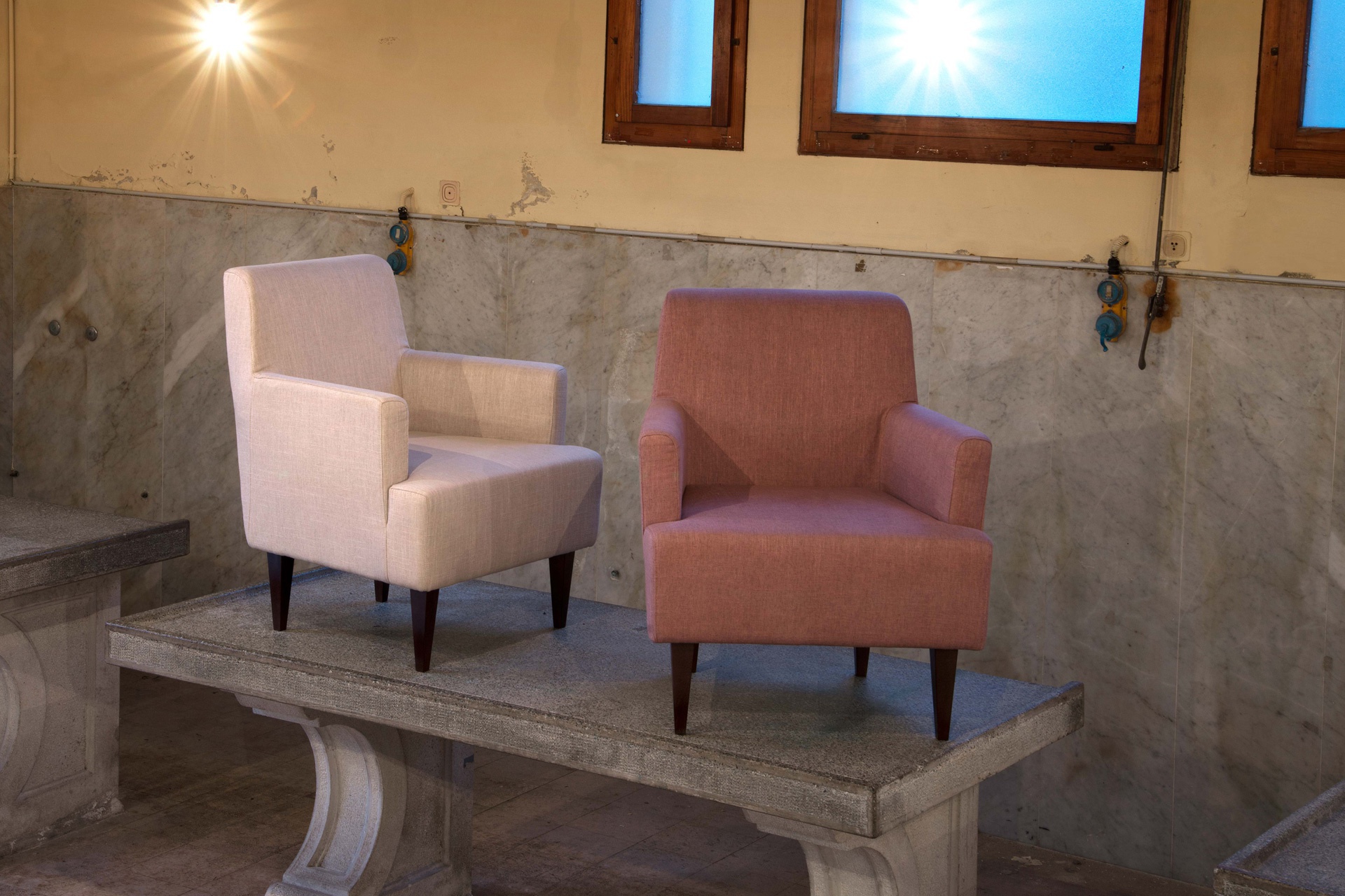 The Luke chair from the collection Contract from the Italian manufacturer Domingo Salotti. Cozy recliner, made in a minimalist style and provide comfortable daily rest. The frame and legs are made of wood, tapered legs shape. Padding - monochrome textiles from a range of companies, the filler - polyurethane foam of different densities. Seat with extra volume, soft armrests. Colors to choose from a collection company.