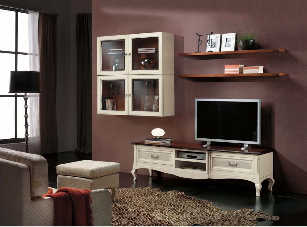Living room (sofa set) from the Italian manufacturer Mirandola Export. The model is executed in classical style. The frame is made of wood. Set has a Cabinet for your TV with two drawers and two niches and two shelves for books and hinged closed shelves with glass doors. A magnificent Suite of Mirandola Export will perfectly complement Your interior.