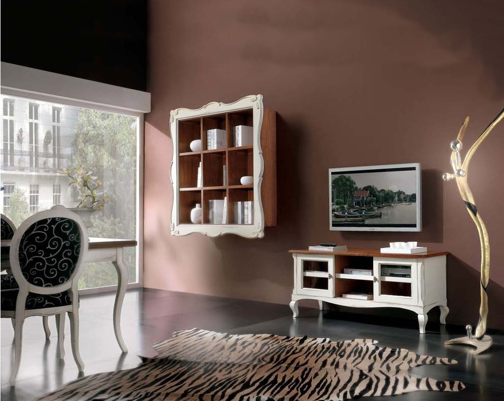 Living room (sofa set) from the Italian manufacturer Mirandola Export. The classic model is made of wood. Set has a Cabinet for the TV with glass doors and shelves and bookcase with shelves for books. Elegant products from Mirandola Export will be a wonderful addition to Your interior.