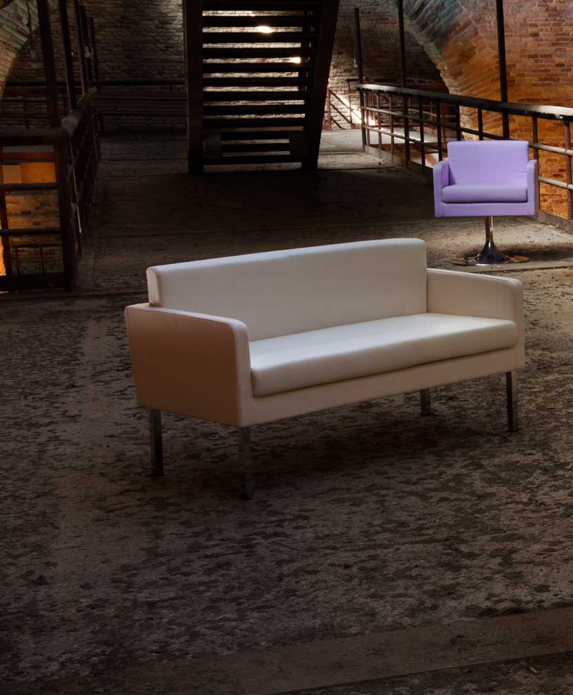 Sofa Pastel collection Contract from the Italian manufacturer Domingo Salotti. Soft double sofa classic proportions not only decorate the public spaces, but also a home bar or kitchen. High legs in polished metal, upholstery is monochromatic leather from the company portfolio. The sofa is designed in modern style. The backrest and the armrests are low, the filler - polyurethane foam of different densities. Colors to choose from a collection company.