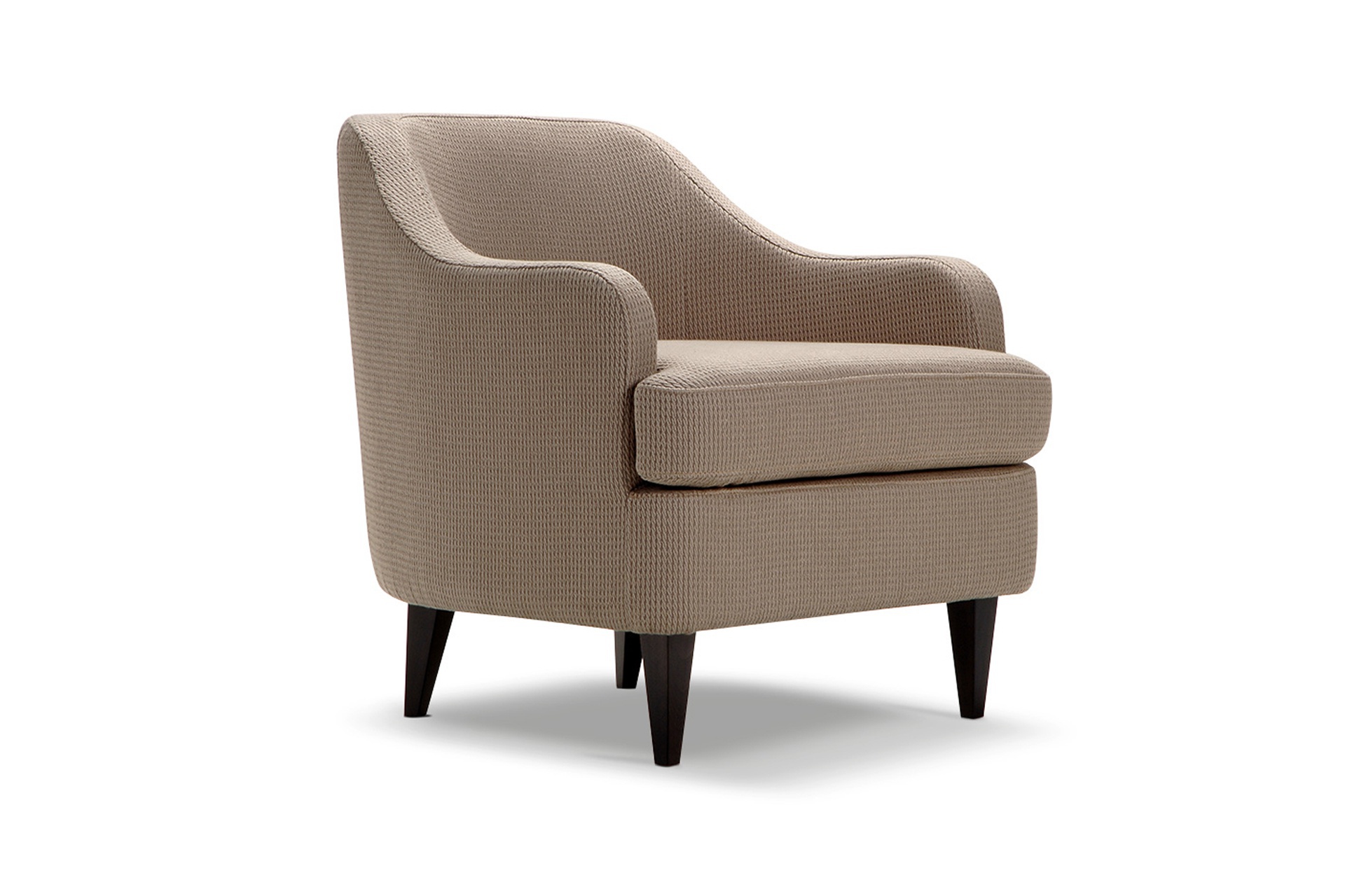 Armchair Nor from a collection Contract from the Italian manufacturer Domingo Salotti. Cozy recliner, made in a minimalist style and provide comfortable daily rest. Perfect for public spaces and for home living room or library. The frame and legs are made of wood, tapered legs shape. Padding - monochrome textiles from a range of companies, the filler - polyurethane foam of different densities. The variety of color and texture of the upholstery will allow you to pick a model for any interior. Seat with extra volume, soft armrests. Colors to choose from a collection company.
