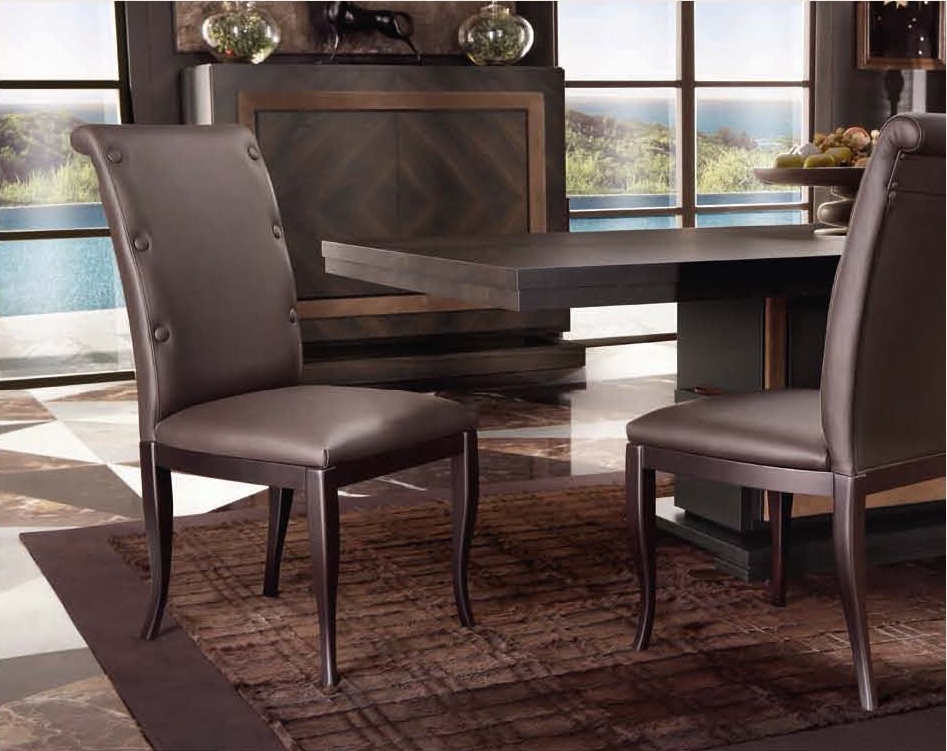 BARBALTADUE chair from the Italian manufacturer Smania. The model is made in art Deco style. The frame is made of wood. As the upholstery used is genuine leather. High back adorned with buttons.
