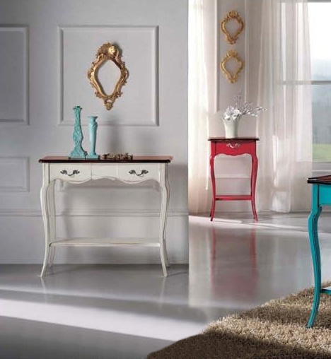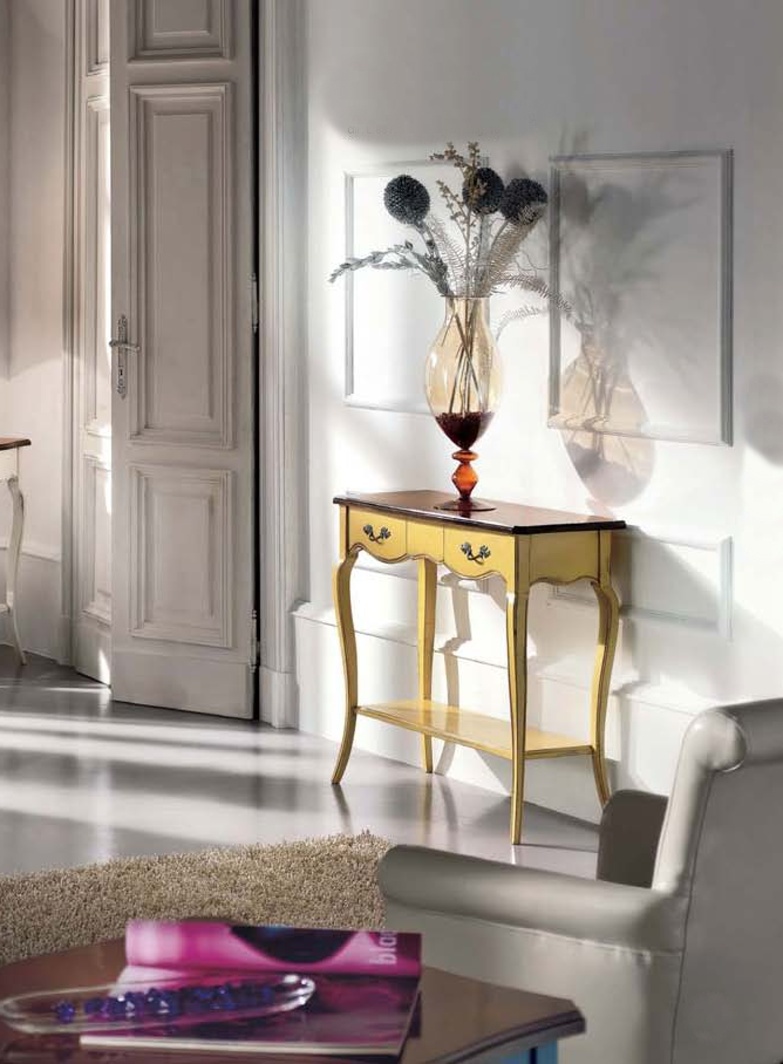 The console from the Italian manufacturer Mirandola Export. An elegant model has two drawers with decorative handles and a lower shelf. The frame is made of wood. Colours in stock. A style classic. Decorative console Mirandola Export will decorate and complement Your interior.