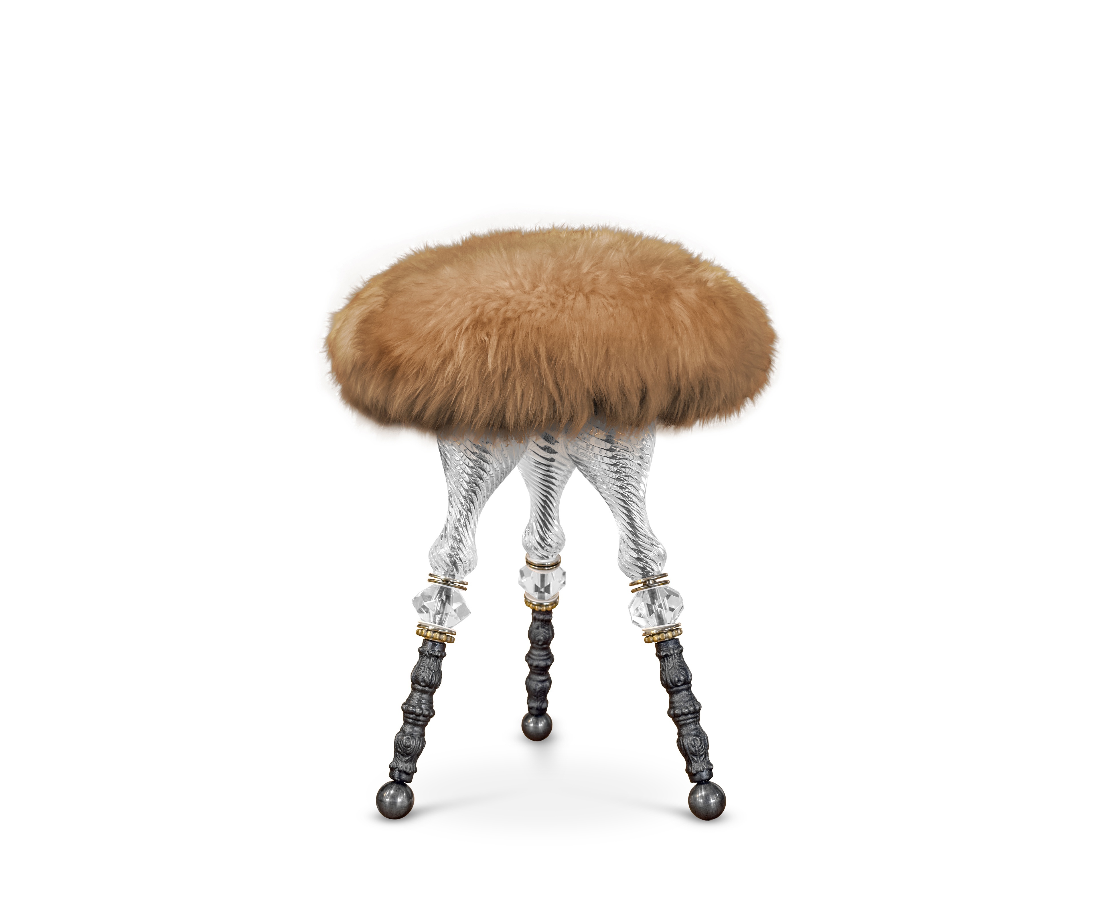 frame: iron finish: glass seat: fur finish: crystal finish: handmade |