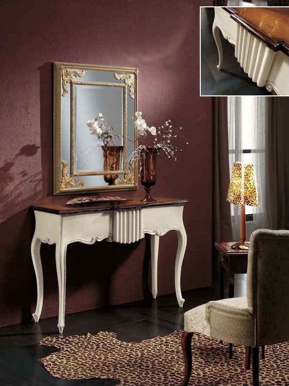 The console from the Italian manufacturer Mirandola Export. Decorative console made in the classic style. Wooden frame. The model has one drawer. The facade is carved and shaped legs give the product elegance and magnificence. Luxury console Mirandola Export will decorate Your interior.