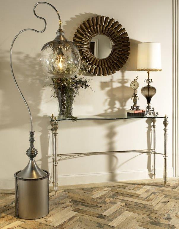 frame, base: iron finish: brass finish: crystal frame, base: forged |