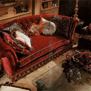 Sofa Demi-Lune from the Italian manufacturer Provasi. The body of the sofa is made from solid wood and upholstery made of velvet. The color of this model of sofa - red.