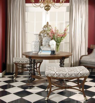 The Barley Twist table from the American manufacturer Pearson. This wonderful sculptural table inspired by the Renaissance style, can serve as a dining or gaming - in any case, it will become the natural centre of the room. Made entirely of mahogany hardwood in a standard finish of ginger. Twisted legs, carved rails in the form of the letter X raised to the stand-buns. Plank top with a well-designed wood texture hand-finished. Finishes in stock.