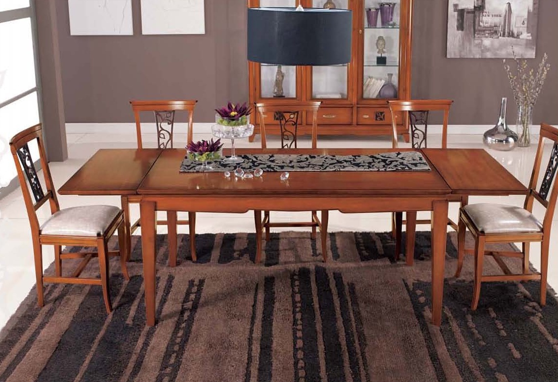 Dining room (dining set) from the Italian manufacturer Mirandola Export. Products are made in the classic style. The frame is made of wood, finishing walnut wood, upholstered chairs leather. Set consists of extendable dining table and chairs with upholstered seat and carved back. Set Mirandola Export will create a favorable atmosphere in Your dining room.