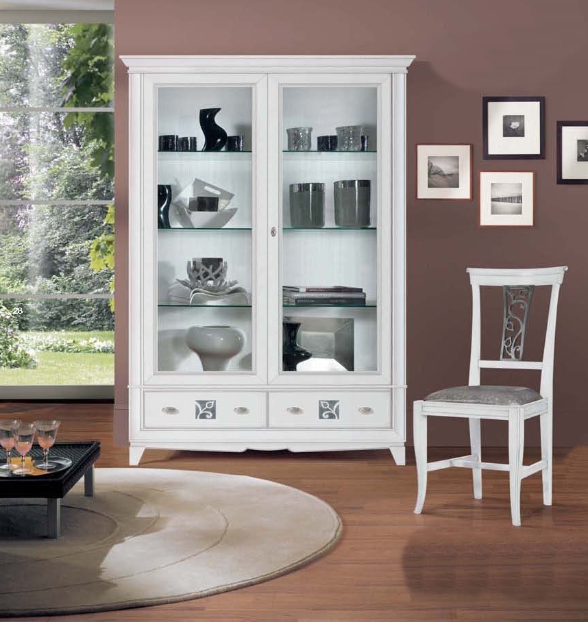 Showcase from Italian manufacturer Mirandola Export. Showcase has two glass doors, three drawers and three glass shelves. Model in the classic style. Wooden frame, finished with silver leaf. The perfect showcase Mirandola Export is an elegant addition to Your interior.