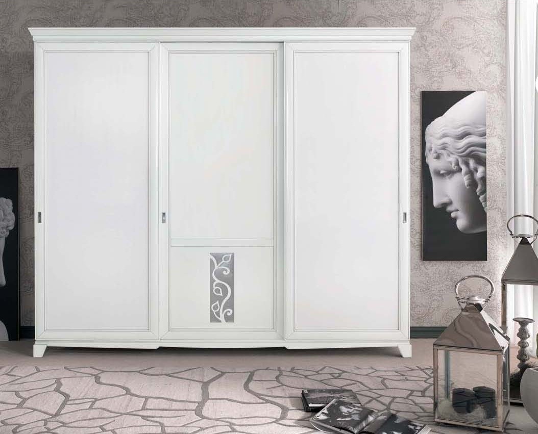 Wardrobe from the Italian manufacturer Mirandola Export. The Cabinet is made in classic style. The frame is made of wood, decorative pattern on the facade from a silver sheet. The model has three sliding doors and inside shelves, racks and drawers. Roomy and elegant wardrobe Mirandola Export will adorn Your bedroom.