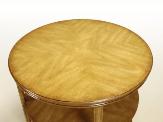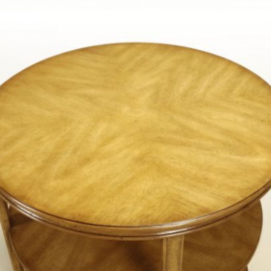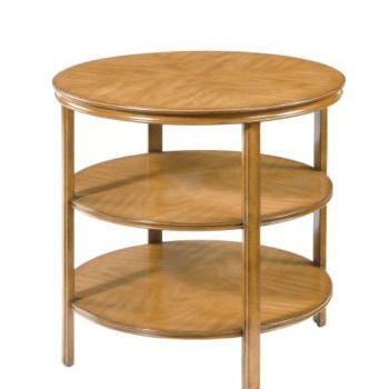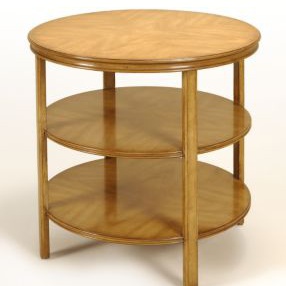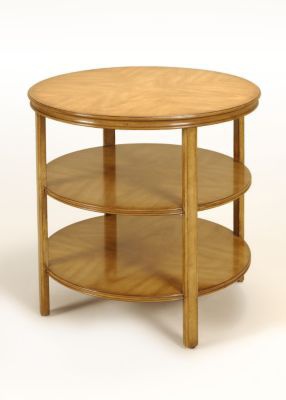 Table Stevenson from the American manufacturer Pearson. Multi-level round table under the lamp will allow to place all necessary items on hand. Made of wood in standard finishes veneers 1240 Fawn. Top and side rack is finished in forming the double seam. Presents a model with horizontal levels in the solar decoration light wood. Finishes in stock.