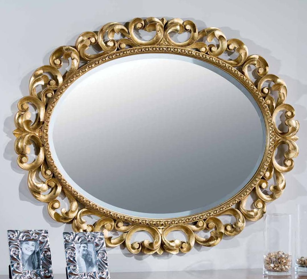 The mirror from the Italian manufacturer Mirandola Export. Frame items oval shape with hand-crafted silver or gold. The product is made in a classic style, framed in a figure-carved frame. Colours in stock. Elegant wall mirror from the Italian manufacturer Mirandola Export perfectly decorate any room.