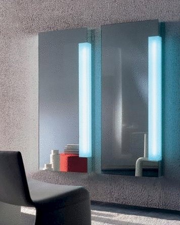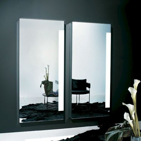 The Diamond mirror from the Italian manufacturer Porada. Wall mirror square and rectangular shapes with lights on the back wall.
