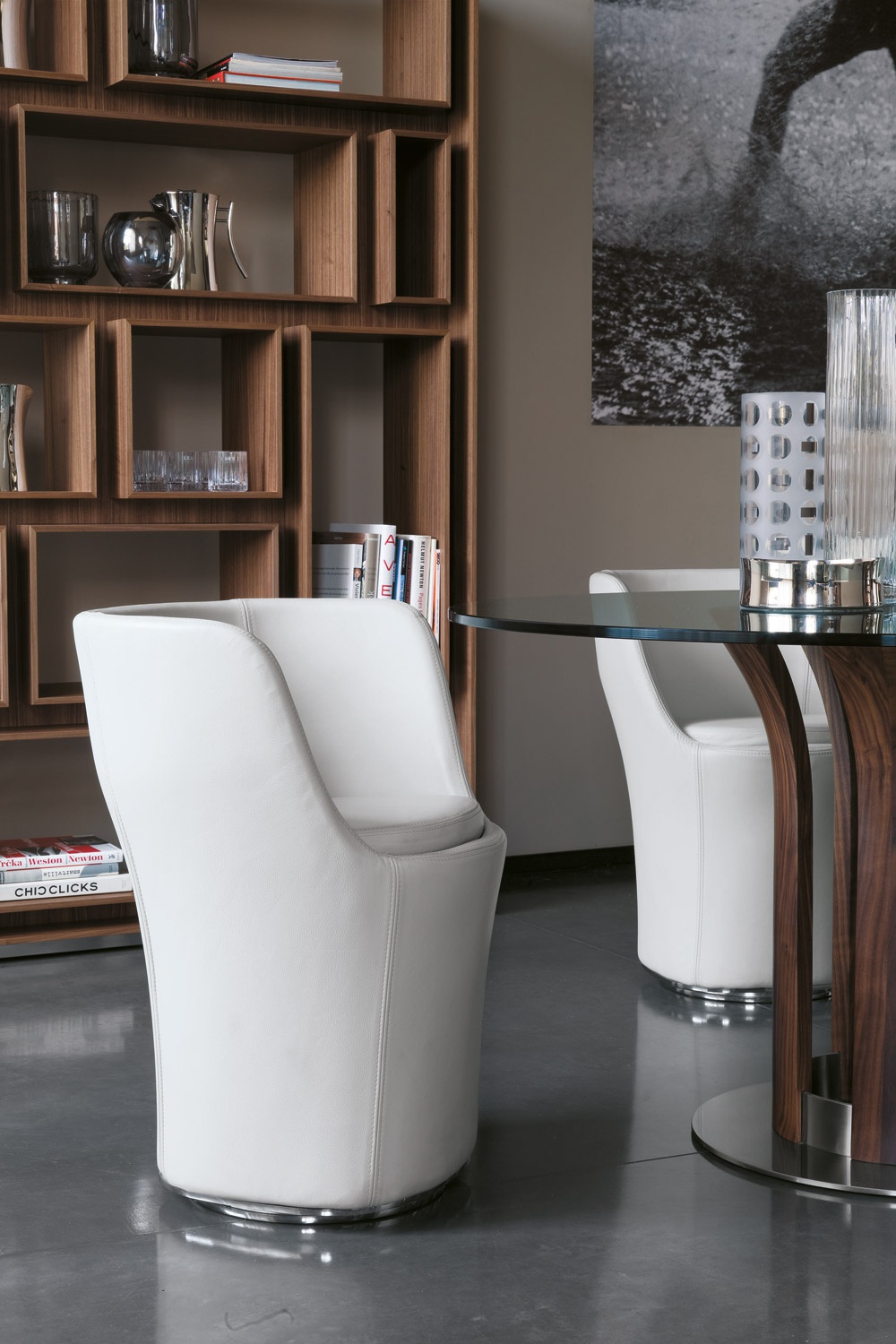 The Diva chair from the Italian manufacturer Porado. Soft chairs entirely covered in leather. There are several color options from a collection company.