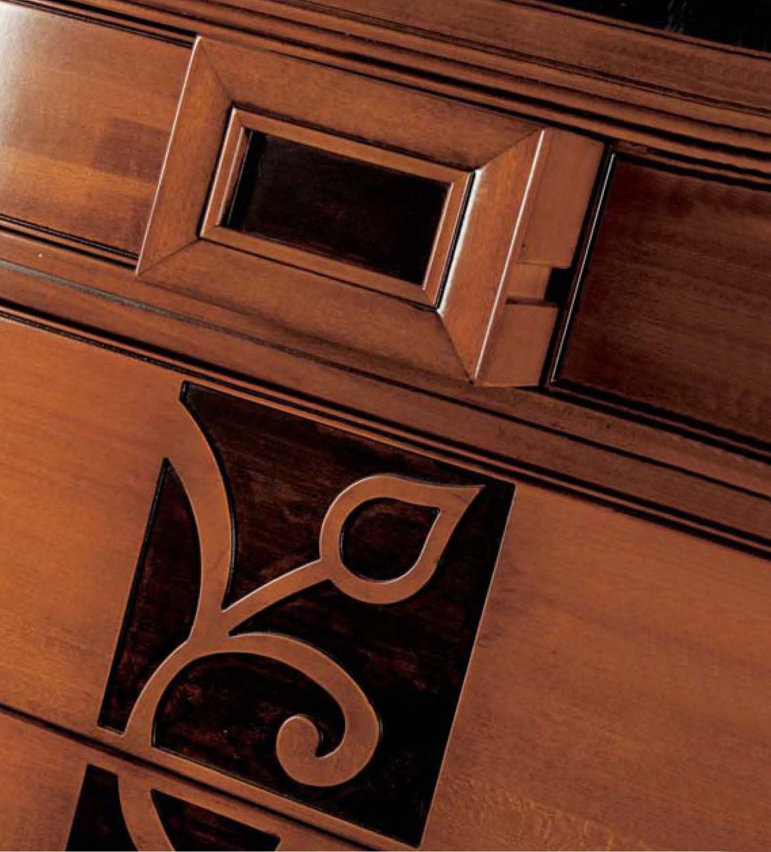 A chest of drawers with carved pattern on the facade, Mirandola Export