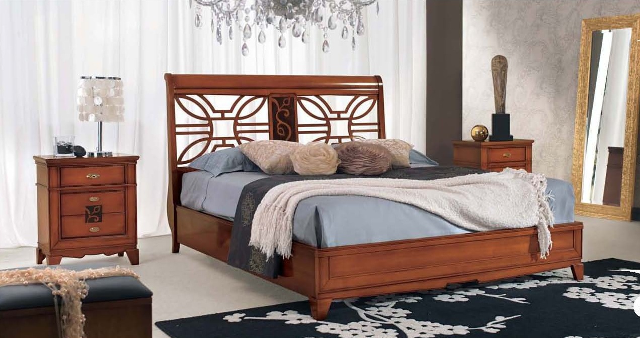 Bedroom (Suite bedroom) with bed with carved headboard, Mirandola Export