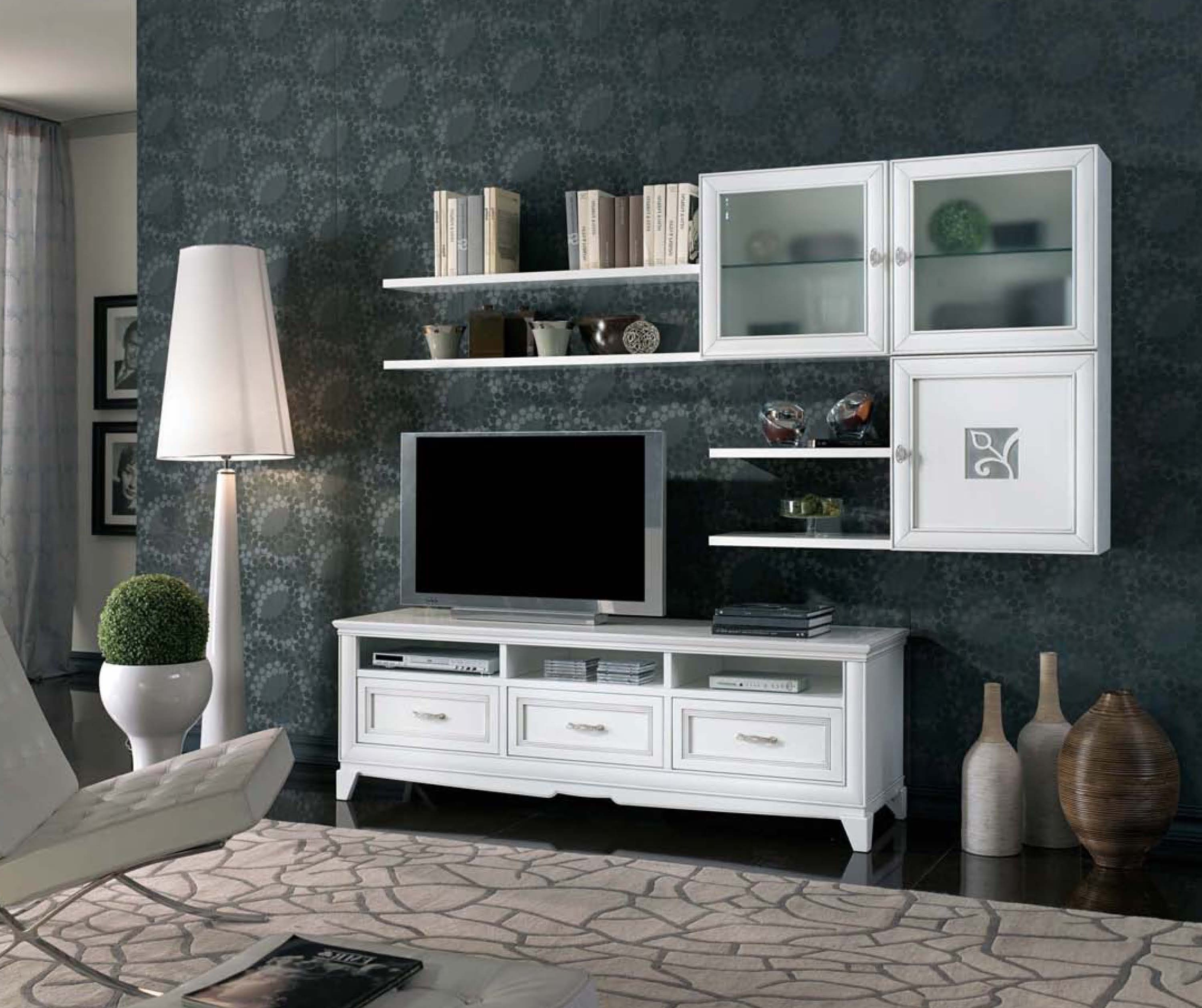 Modular system from Italian manufacturer Mirandola Export. The system has a Cabinet for TV with drawers and open compartments, wall Cabinet and shelves. A style classic. Frame made of wood, doors of frosted glass, finish pattern on the facade - silver leaf. Elegance, versatility and beauty are the main advantages of the modular system Mirandola Export.