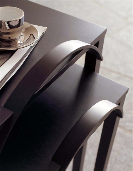 Duetto coffee table by Italian manufacturer Porada. Set of two side table in solid American cherry stained wenge. A table covered with a varnish. The model is supplemented with handle for easy moving. If desired, one table can be pushed under another.