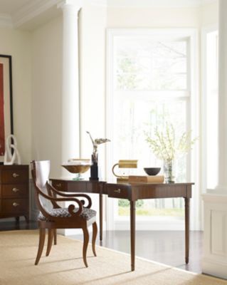 Chair from the collection of Modern English from an American manufacturer Henredon. Soft dining chair, made of modern materials, continues the tradition of famous English cabinetmakers. The frame of the chair is made of solid beech wood and finished with veneer of rosewood in English. Legs bent, back and armrests carved. Chair shown in fabric Vitalize with Welt trim; available in any fabric or leather from a range of manufacturers, and also with SLIP seat. Colors you can choose according to the catalogue of the manufacturer.