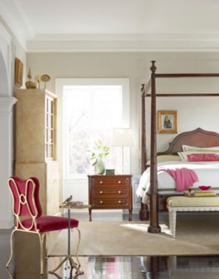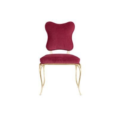 Padded chair Cassandra from the Celerie Kemble collection from the American manufacturer Henredon. Elegant easy chair in the style of romanticism. The frame and legs are made of iron and finished in antique gold. Curved legs, upholstered back fixed on the curly bracket. The chair is available upholstered in any fabric or leather from the company portfolio. Colors you can choose according to the catalogue of the manufacturer.