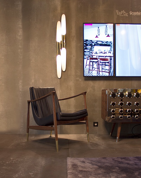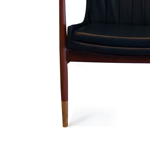 Chair Caetano from the Portuguese manufacturer Delightfull. Hearing the name Caetano Veloso spontaneously begin to dance to the rhythm of Bossa Nova. Frame, dark walnut finish made of painted leather, brass tips on legs - classic retro design with a modern edge. Model Caetano will fill the style of Your interior.