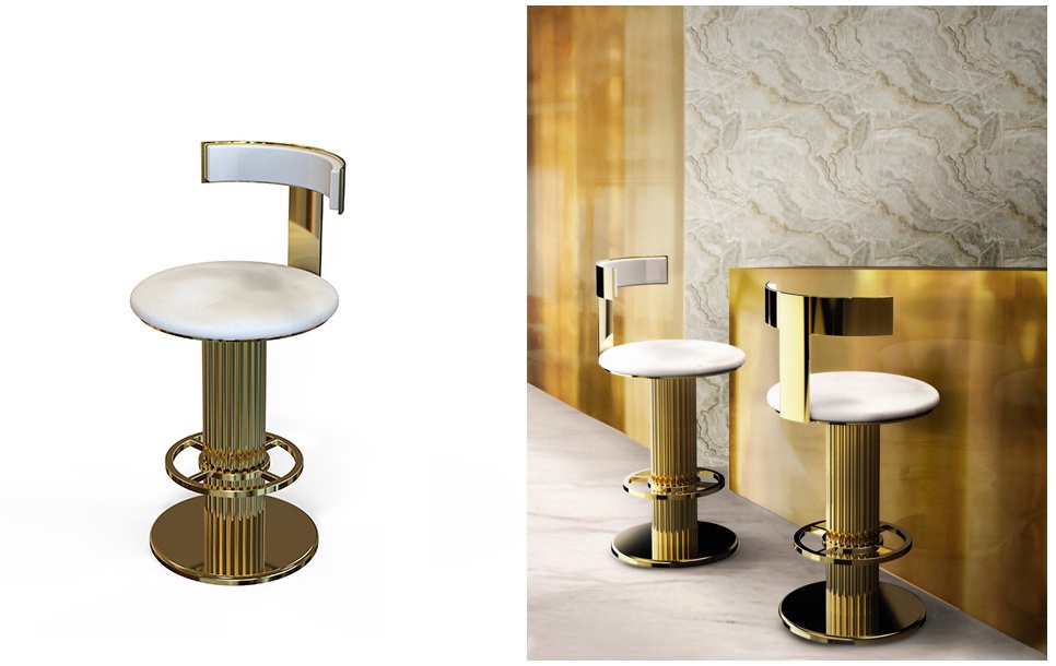 The Gilberto bar stool from Portuguese manufacturer Delightfull. A modern interpretation of the bar stools of the 50s: retro lines, modern finishing and vivid colors. You may think You have entered a bar in the 50's or 60's, but do not rush to be disappointed, You are in a very luxurious bar, gold plated, genuine leather, the perfect shape of the back. Now You can spend hours enjoying cocktails in a luxurious atmosphere.