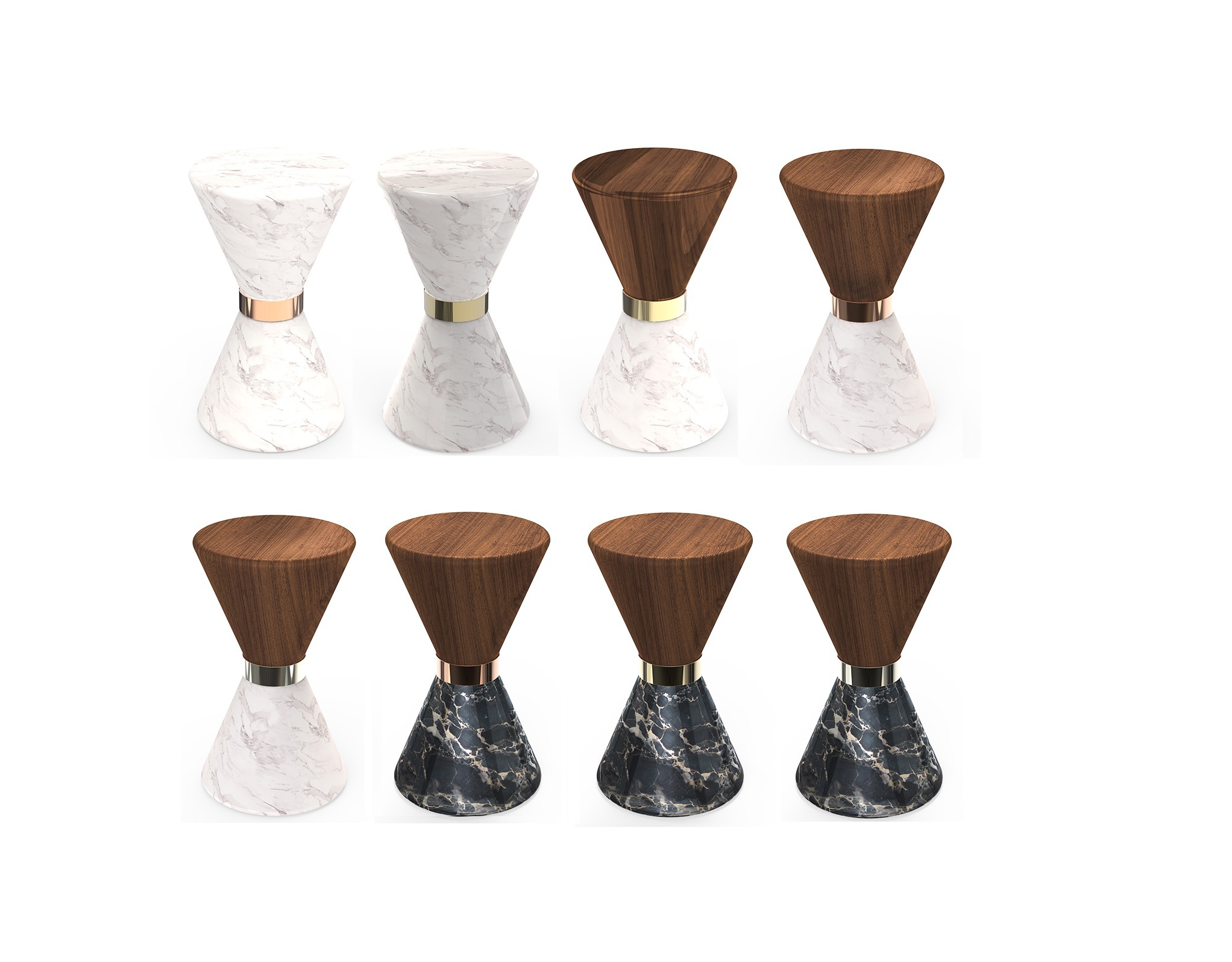 Stool Vinicius from Portuguese manufacturer Delightfull. Model Vinicious is a great example of contrast. White marble piece is beautiful in combination with black marble, gold plated brass, and with an array of walnut, brass in silver. The eponymous Brazilian musician Vinicius stool is the perfect piece of furniture in Your living room or bar.