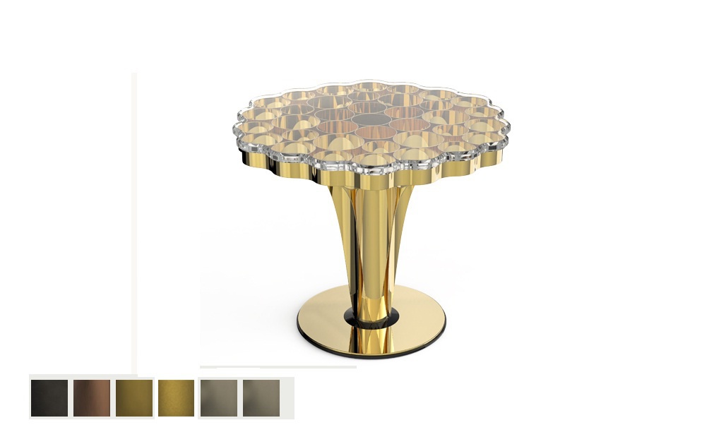 frame, table top: stainless steel top: acrylic finish: copper finish: gilding finish: nickel |