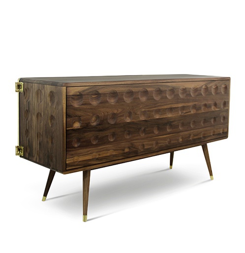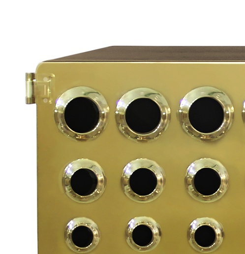 The Monocles sideboard from Portuguese manufacturer Delightfull. If you are a fan of the world of James bond, Martini and gin, of course, You will be blinded by the model Monocles. The frame is made of solid walnut massif wood, ferrules, hinges - brass. The decor is a perforation.
