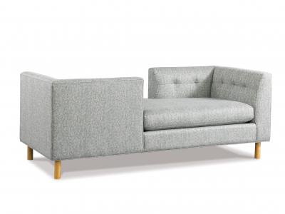 Couch Francis Tete-A-Tete from American manufacturer MotionCraft. Comfortable double couch, built in a modern French style, will decorate the living room or boudoir. Frame and round legs made from solid wood: the model is shown in French oak. Seat and two corner backs are covered with textile, backless embellished with stitch Capito, filler - polyurethane foam. The color and texture of the upholstery, and wood for the frame, you can select the number of items.
