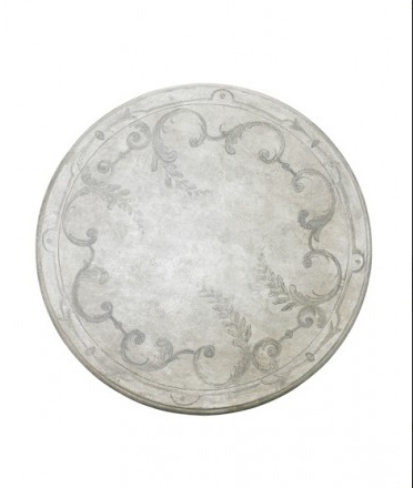 Table Avignon from the American manufacturer MotionCraft made by Mr child. & Mrs. Howard. Round dining table, made in the popular French style, will adorn any dining room or living room. Made of solid woods. Massive carved leg rests on four grounds. Round table top features ornate motif. The product is aged. Shown in special finish Acanthus; available other finishes.