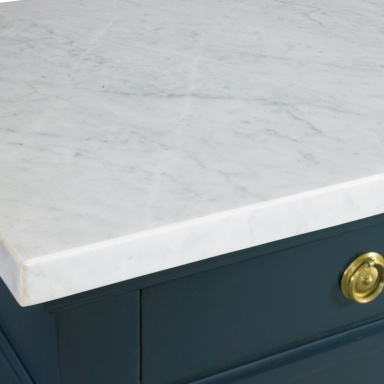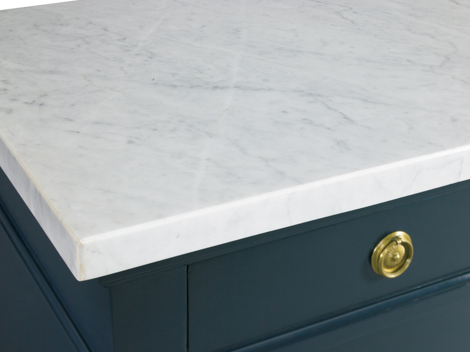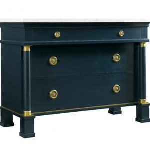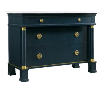 Dresser Hartman from the collection of Classics from the American manufacturer MotionCraft made subsidiary Lilian August. Elegant dresser of classical lines with a unique color scheme will adorn any bedroom, living room or boudoir. The dimensions of the drawers allows you to use it as a dressing table. The frame is made of solid wood. The facade is decorated with the iconic Tuscan columns on plain bases. Top made from heavy white marble, slightly hangs over the facade, forming a kind of visor. Three drawers, the hardware is solid brass. Exquisite cobalt blue in combination with white marble and Golden brass make the model unique.
