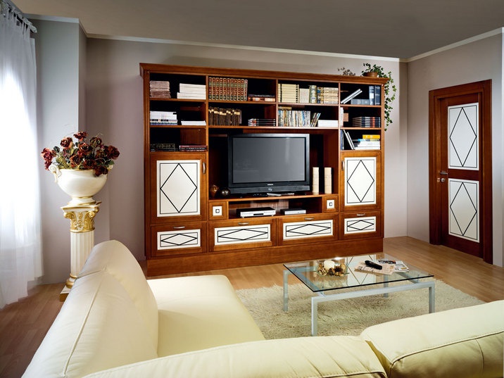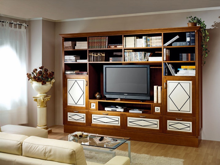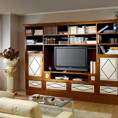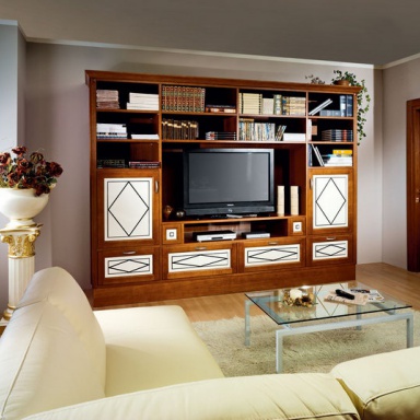 Rack for TV from Ambra Italian manufacturer of Wood Only. Frame, base made of solid wood. Finish - to choose from a catalog. Fittings made of metal. The decor is entirely hand made. Product in a classic style. Colours in stock.