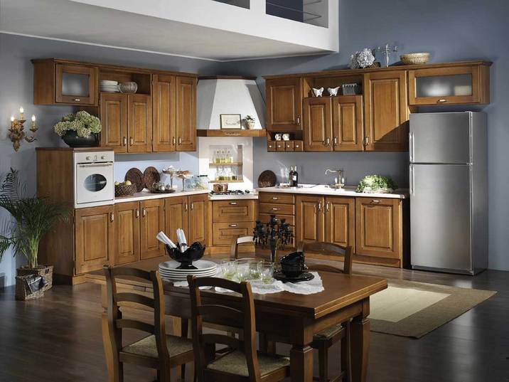 Set for the kitchen Valentina from the Italian manufacturer Onlywood. The frame base is made of solid wood. Finish - wood veneer in a wide range. Working surface - the stone is out of range. Accessories exquisite metal. Set in a classic style. Colors - in stock.