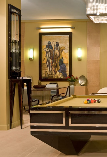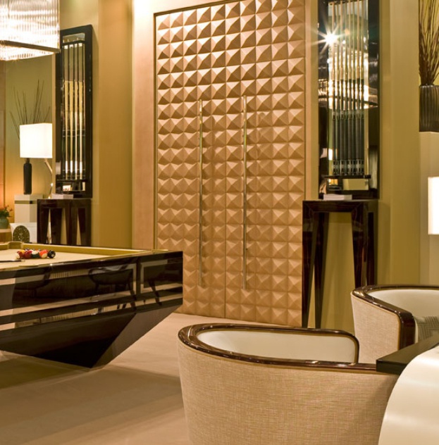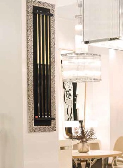 Tiavnica from the Italian manufacturer Tura. Made by designer G. Ventura by special order of the company. Stand for Kyiv made by hand and covered with a shiny skin parchment high-tech manufacturing. Finished in highly polished stainless steel. Available to order in various sizes, colors and for different game types.