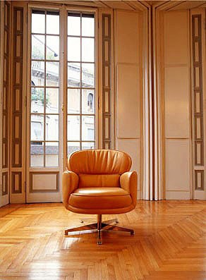 Utopias chair from the Italian manufacturer Mascheroni. Base metal, upholstery - leather. The model rotary is designed for the living room in a modern style. Colors: brown, black.