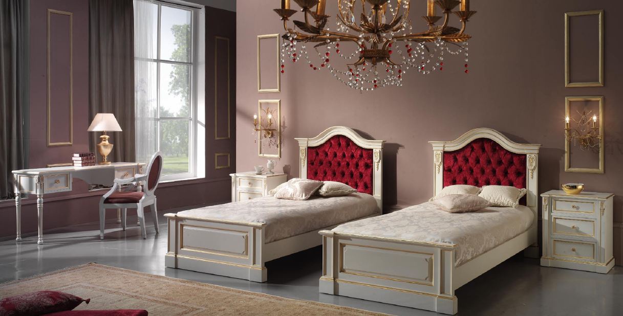 Set for bedroom Beatrice from the Italian manufacturer Onlywood. The set includes: single beds, bedside tables, Desk, chair. The headboard is high, can be decorated with textiles and stitch-Capito, or lacquered in primary colors. Frame, base, the table top is made of solid wood in the finishing varnish in the catalog. Ornament stands hand-carved gilded. Set in a classic style that will fill the interior with luxury and elegance.
