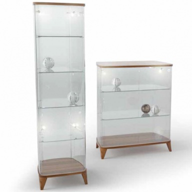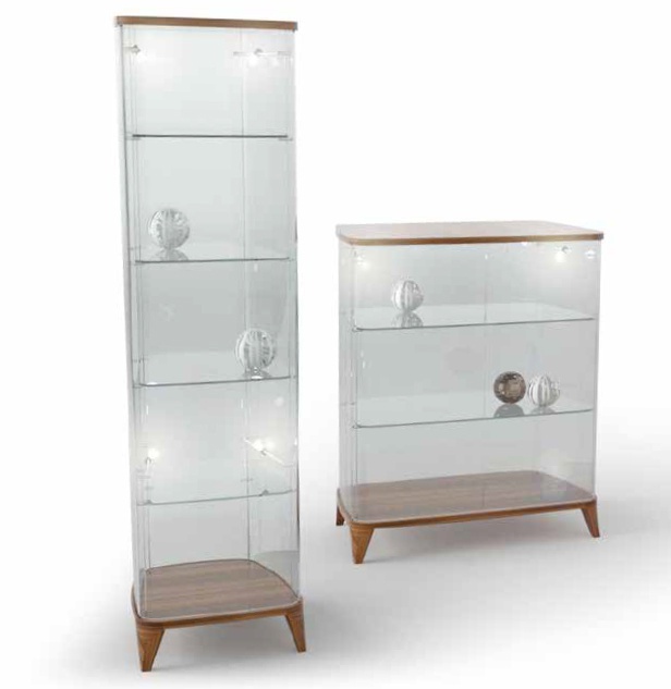 Showcase Seventy from the Italian manufacturer Reflex Angelo. Easy, elegant, filled with light and air, the model will decorate the interior of any room. Made from curved transparent glass 6 mm. thick glass Shelves; top and bottom Windows, as well as legs are made from walnut Canaletto. The glass doors have a lock. Showcase is available in three different sizes. Optional - lighting system inside the case.