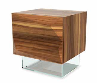 Bedside table bedside Quartz from the Italian manufacturer Reflex Angelo. Original model with geometric silhouette from designer Ricardo Lucatello made in a modern style. Wooden frame two drawers finish walnut Canaletto. Wood finish - a matte or shiny varnish standard colors. Base tables are made of clear glass with beveled edges. Colours in stock.