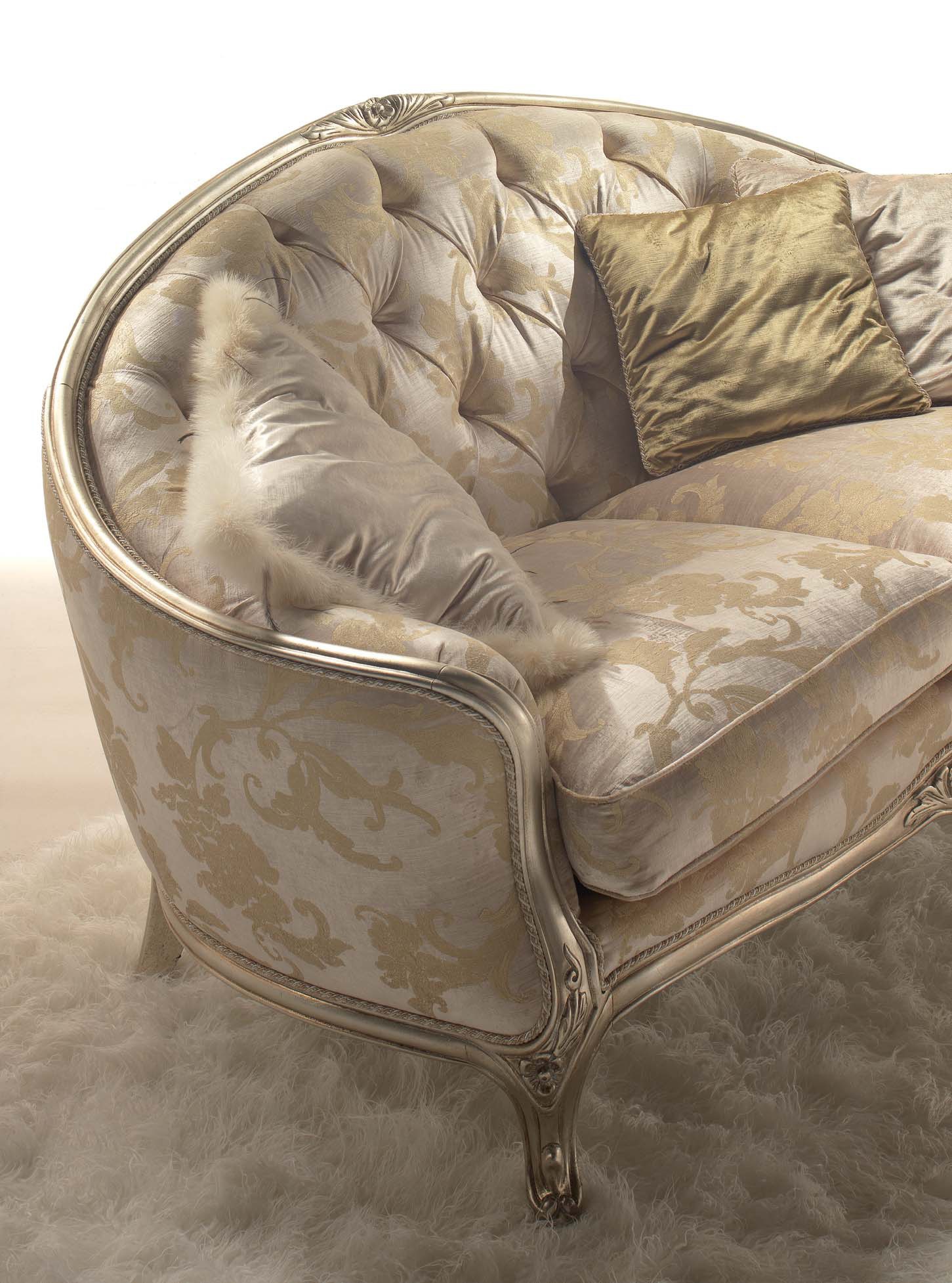 Florence living room set from the Italian manufacturer Tosconova. The furniture set includes sofa and chair. Frame, base made from solid wood. Filler - polyurethane foam. Upholstery - eco-leather/textile, available rich palette of textures, colors, shades. Cushioned seats - removable. The semi-open frame, carved and patina of silver. Products can be supplemented with decorative pillows from a catalog. A refined choice for an elegant living room.