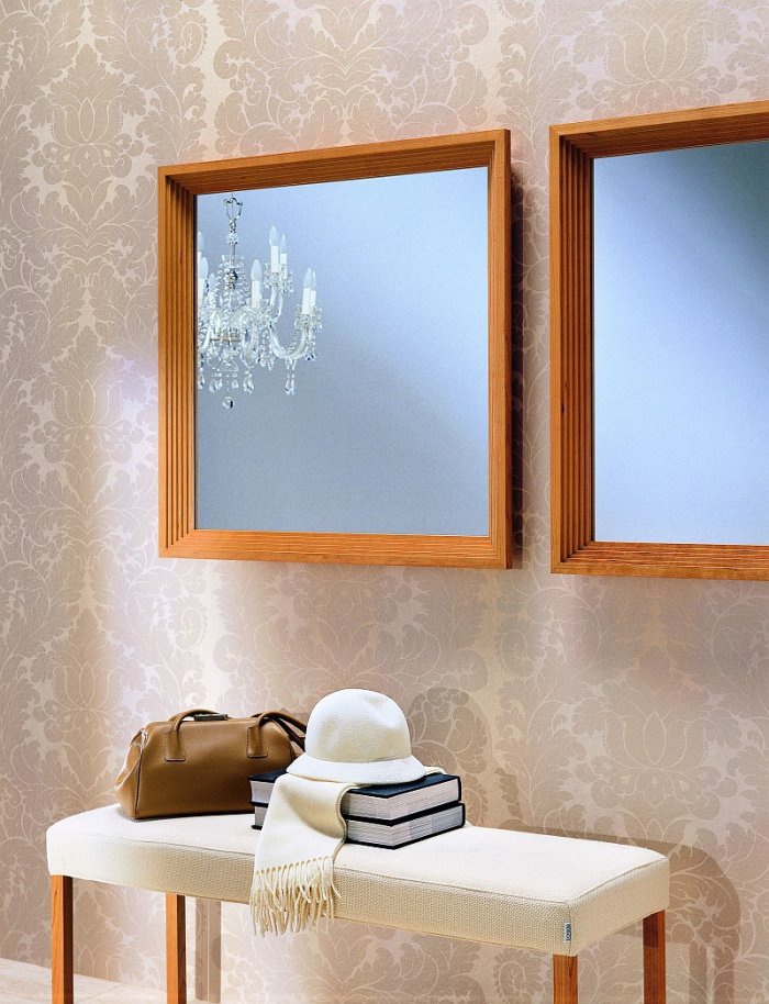 The mirror Enigma from the Italian manufacturer Porada. Wall mirror with frame in solid cherry natural American cherry stained wenge. Finishing made with lacquer. Available in two sizes.
