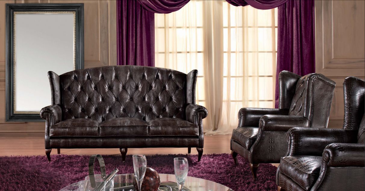 Living room set in leather and lacquer Classic, Tosconova